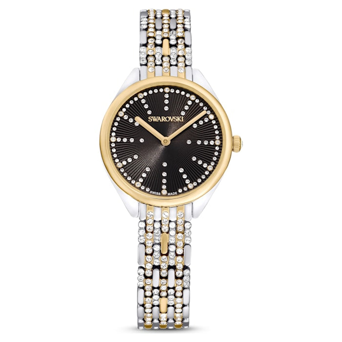 Crystalline Delight Watch, Metal Bracelet, Black, Rose-gold tone PVD