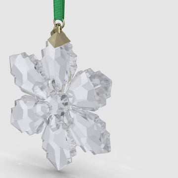 Our much-loved tradition of Annual Edition Ornaments continues in 2026 with this geometric snowflake creation. Masterfully cut with 192 facets, the transparent design hangs on a green grosgrain ribbon and features a gold-tone plated metal tag, which is engraved with the year and embellished with a small chaton. Use this radiant ornament to decorate a festive tree or hang in a window to celebrate the joy of nature. Decoration object. Not a toy. Not suitable for children under 15.
