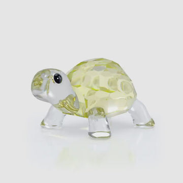 Full of charm and curiosity, this baby tortoise decoration takes the first step in a charming story of nature. Crafted with 71 facets, the design includes the pairing of transparent crystal and warm yellow shades, resulting in a beautiful décor piece that captures the innocence of new beginnings. Decoration object. Not a toy. Not suitable for children under 15.