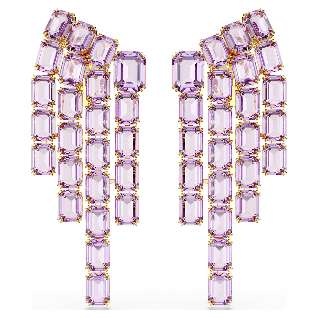 Millenia drop earrings Octagon cut, Purple, Gold-tone plated
