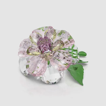 In the floral world, camellias are a classic symbol of love and affection. This light-reflecting tribute is crafted with 823 facets and captures the flower’s flamboyant beauty through a mix of petals in yellow, pink, and transparent shades. The stem and leaves are crafted in glossy green lacquered metal, enhancing the natural charm while celebrating Swarovski’s savoir-faire. Decoration object. Not a toy. Not suitable for children under 15.