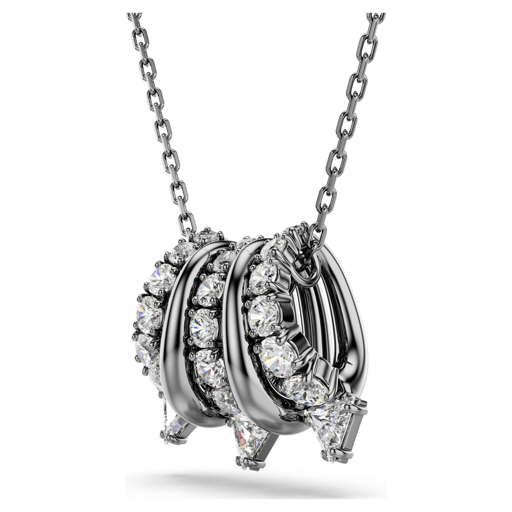 A striking and alternative look for everyday wear. This ruthenium plated pendant is suspended from a delicate chain and features five separate links, including metallic spirals and clear Swarovski Zirconia. The spiky tips add a contemporary finish and match perfectly with the shimmering ear cuffs from the same expressive family.