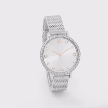 This sleek Clarica watch is distinguished by its signature Milanese bracelet, which delivers a striking mesh style around the wrist. The 35mm design is crafted in stainless steel and features a perfectly circular bezel set with 73 clear crystals. On the sunray dial, the timepiece reveals 11 crystal indexes, a swan emblem at 12 o’clock, and rose gold-tone hands. This Swiss Made watch is water-resistant to 50m and offers a classic choice for everyday luxury.