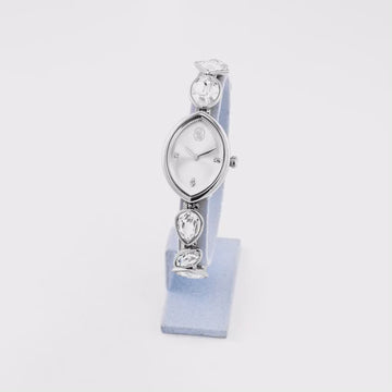 With its captivating collision of shapes, this Swarovski timepiece is inspired by the Gema jewelry family. The almond-shaped case is crafted in stainless steel and features a guilloché dial with three crystal indexes and an elegant swan emblem. Around the wrist, the watch is distinguished by an adjustable bracelet set with eight different crystals in a variety of cuts. Water-resistant to 50m, it’s a playful way to add some radiant geometry to your style.