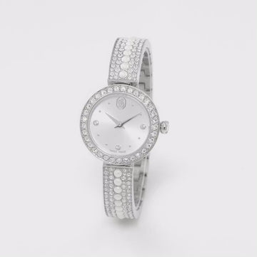 Fusing the radiance of round crystals with the luminosity of Swarovski Crystal Pearls, this Matrix watch epitomizes elegance. The 26mm case is crafted in stainless steel and features a crown with a single crystal, and a bezel set with 33 crystals. The sunray dial also features its own decoration of crystal indexes, while a signature swan emblem is placed at 12 o’clock. Around the wrist, the bracelet is set with 18 Swarovski Crystal Pearls and over 150 crystals, creating a look of timeless sophistication. This Swiss Made timepiece is water-resistant to 50m and is completed with a shimmering crystal crown.