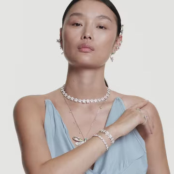 Like a radiant daisy chain, this light-reflecting bracelet features an all-around strand of delicate flowers, each made with a crystal center and petals adorned in glittering pavé. The nature-infused design is ideal for everyday luxury and can be worn with the matching necklace for a timeless combination.