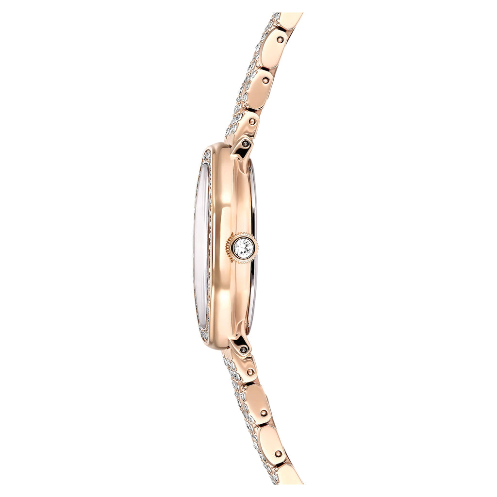 Inspired by the timeless elegance of the Dextera family, this 18 x 23 mm watch is uniquely crafted in Swarovski’s iconic octagon shape. Made in stainless steel with a rose gold-tone finish, the design features a pavé bezel set with 46 crystals, and an additional crystal set within the crown. The sunray dial also includes delicate crystal indexes, along with slender hands and a swan logo at 12 o’clock. To complete this radiant creation, the five-link bracelet is adorned with 108 round-cut crystals, giving you endless shimmer at every hour. This Swiss Made watch is water resistant to 50 metres.