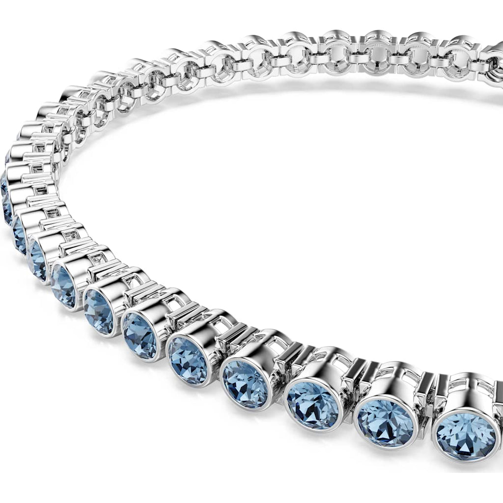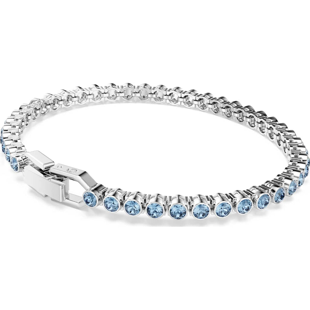 A classic Imber Emily Tennis bracelet with a glow that speaks volumes. This delicate strand of bezel-set blue crystals on a rhodium plated Imber Emily Tennis bracelet is elegant and minimalistic, while still making a bold statement around the wrist. The colorful design features a secure foldover clasp closure and comes with an extender. Wear it to accentuate your style at any time of day or night.