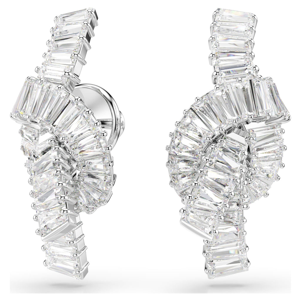 Signifying an unbreakable bond, these Matrix earrings are designed with a unique woven style. Taking the form of a ribbon, each twisted motif is rhodium plated and features a sophisticated adornment of baguette-cut Swarovski Zirconia in prong settings. Reach for these earrings when sophistication is called for – and pair them with the matching Matrix jewelry pieces for a coordinated look.