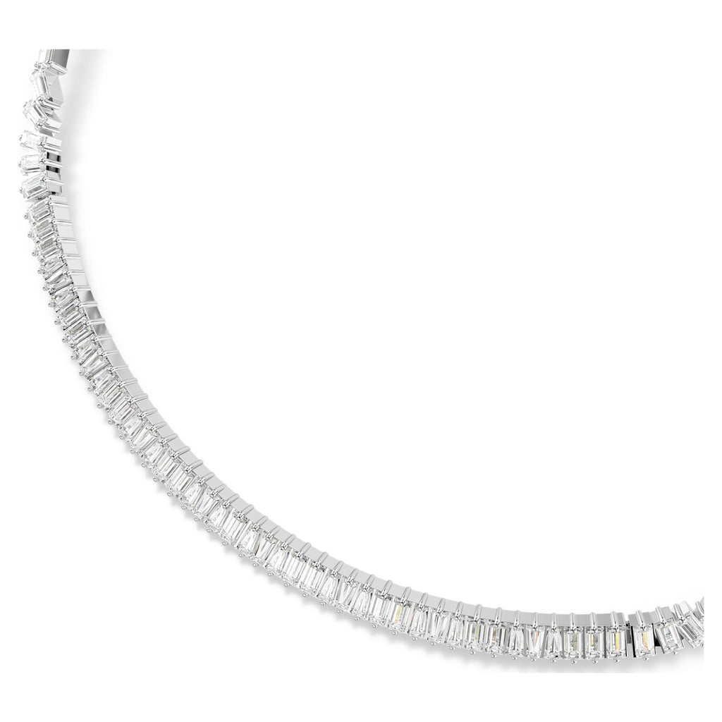 Matrix necklace Baguette cut, White, Rhodium plated