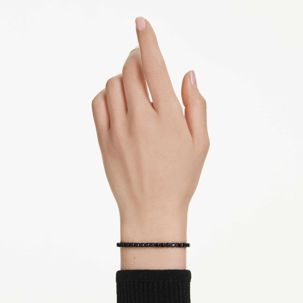 This ultra-modern Matrix Tennis bracelet will put black tones at the forefront of your style. Featuring a ruthenium plated setting with round black ceramic stones, it combines fluidity with extraordinary depth. Wear it to add drama to any look.