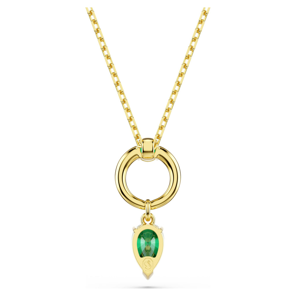 This Mesmera pendant blends color with refinement to create an eye-catching everyday piece of jewelry. The shimmering motif features a pear-cut Swarovski Zirconia in green, which is attached to a luxurious gold-tone plated hoop. An additional round-cut Swarovski Zirconia is placed at the center, while a sliding mechanism on the chain allows the pendant to be easily adjusted to your desired length.