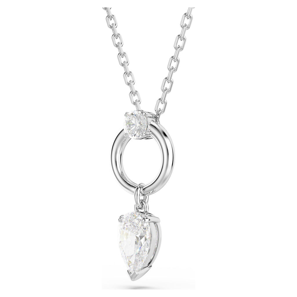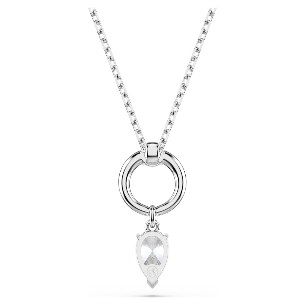 This Mesmera pendant blends radiance with refinement to create an eye-catching everyday piece of jewelry. The shimmering motif features a pear-cut Swarovski Zirconia, which is attached to a luxurious rhodium plated hoop. An additional round-cut Swarovski Zirconia is placed at the center, while a sliding mechanism on the chain allows the pendant to be easily adjusted to your desired length. Wear it with the matching earrings to create your own stunning set.