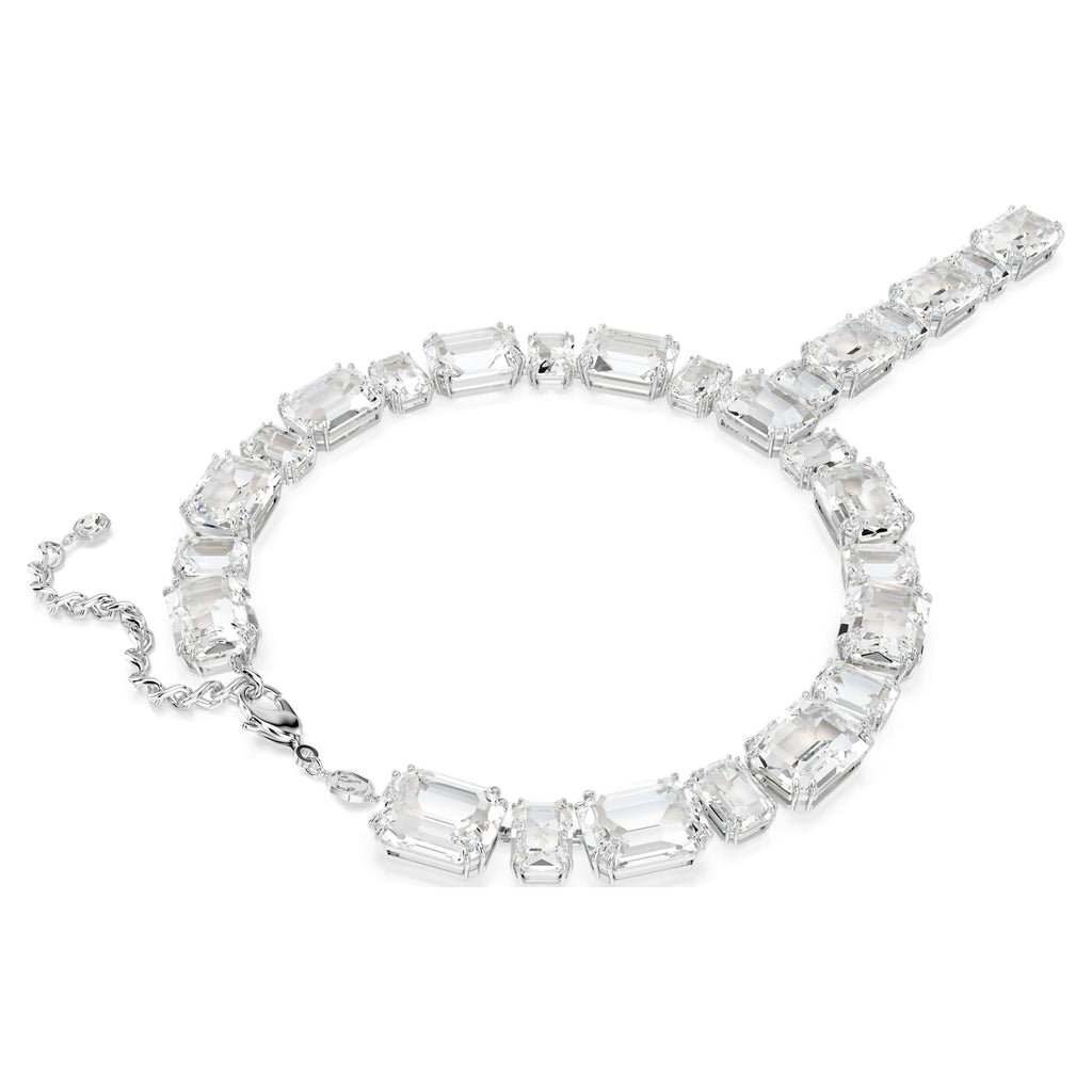 Radiate wonder with this t-shape necklace from the Millenia family. The rhodium plated design features an all-around row of clear crystals, presented in various shapes and sizes, and with a long strand at the front. It’s a superb way to elevate the light and joy in your style. Combine this necklace with some matching Millenia earrings to complete the powerful look.