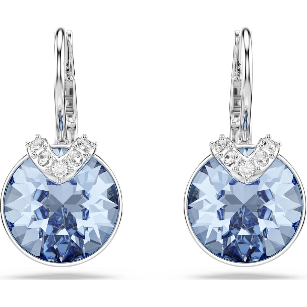 Infuse some color into your everyday wardrobe with this captivating pair of pierced earrings. Each rhodium-plated piece is brought to life with a round-cut crystal in light blue, creating a look of pure joy. A perfect choice for your day-to-night styling, these earrings can be worn together with a matching light blue pendant.