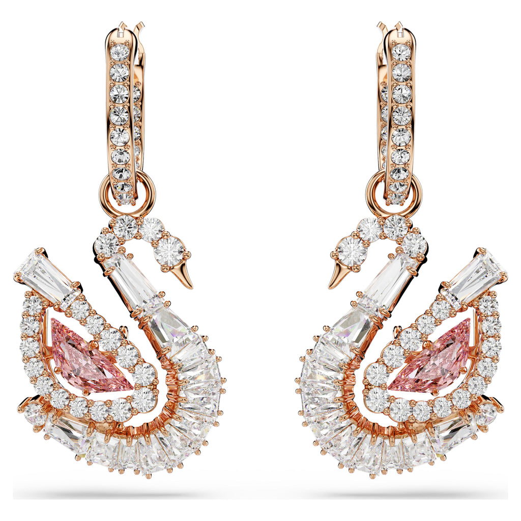 Embrace the delicate movement of Swarovski’s iconic swan with these emblematic earrings. Attached to a mini hoop with shimmering pavé, each graceful silhouette is rose gold-tone plated and adorned in clear Swarovski Zirconia with a pink dancing stone in a swan body cut. This radiant detail creates an endless motion of color and light, and will keep your style shining at every moment.