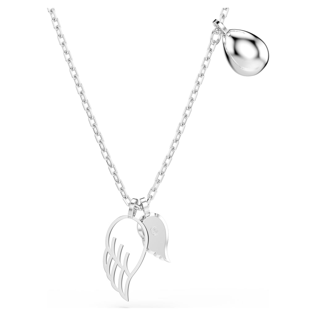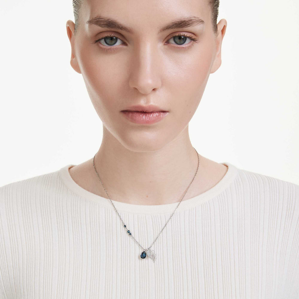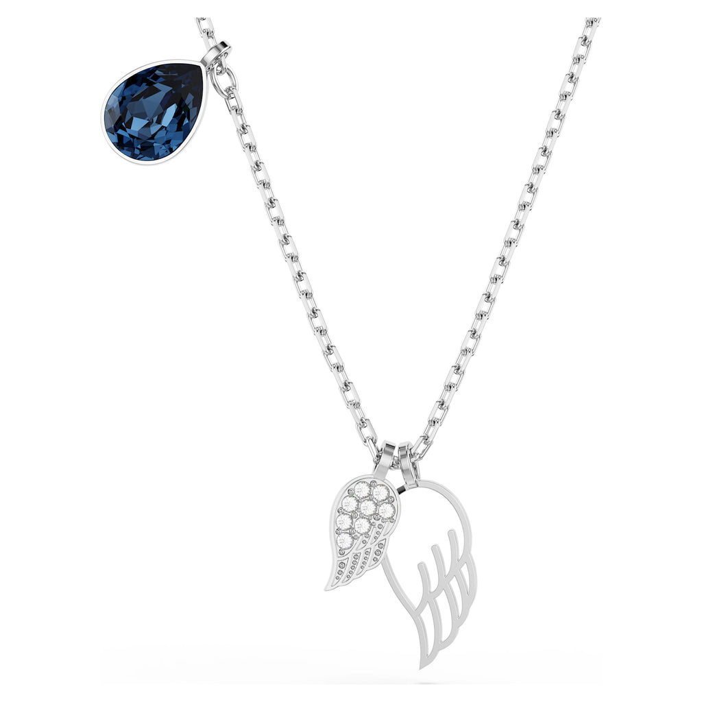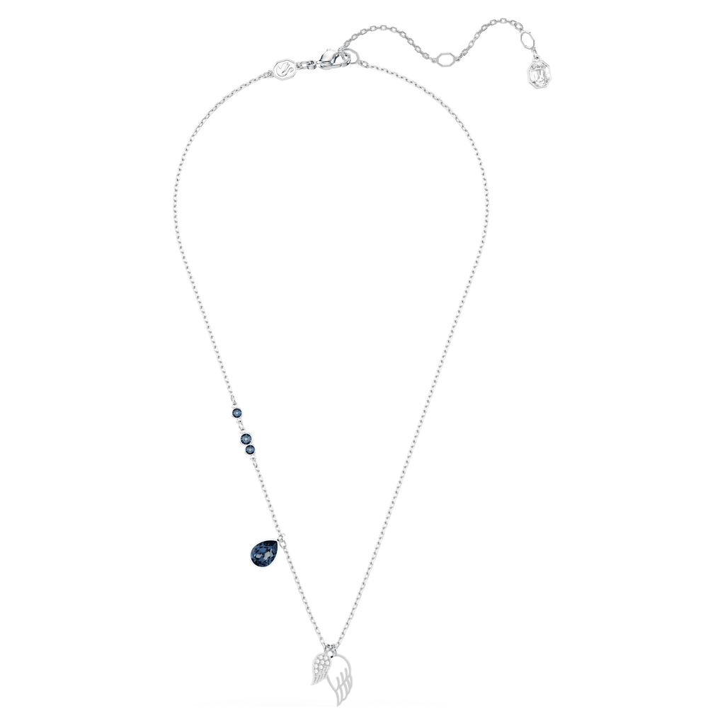 The elegant motifs in the Symbolica family are a magical recreation of ancient talismans. This rhodium plated necklace features a decorated pair of angel wings as a classic emblem of protection. An additional pear-shape crystal and three smaller crystals in blue are also attached to the chain. Wear this necklace with matching Symbolica jewelry pieces to heighten the spiritual side of your style.